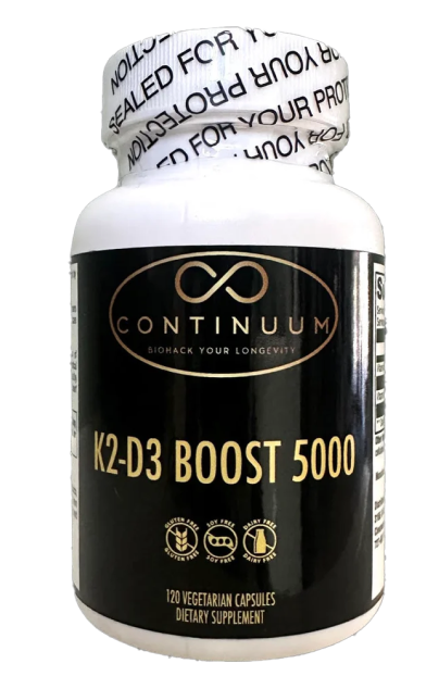 Continuum Wellness's K2-D3 Boost supplement maximizes the synergy between these vitamins, optimizing calcium absorption and promoting strong bone health.